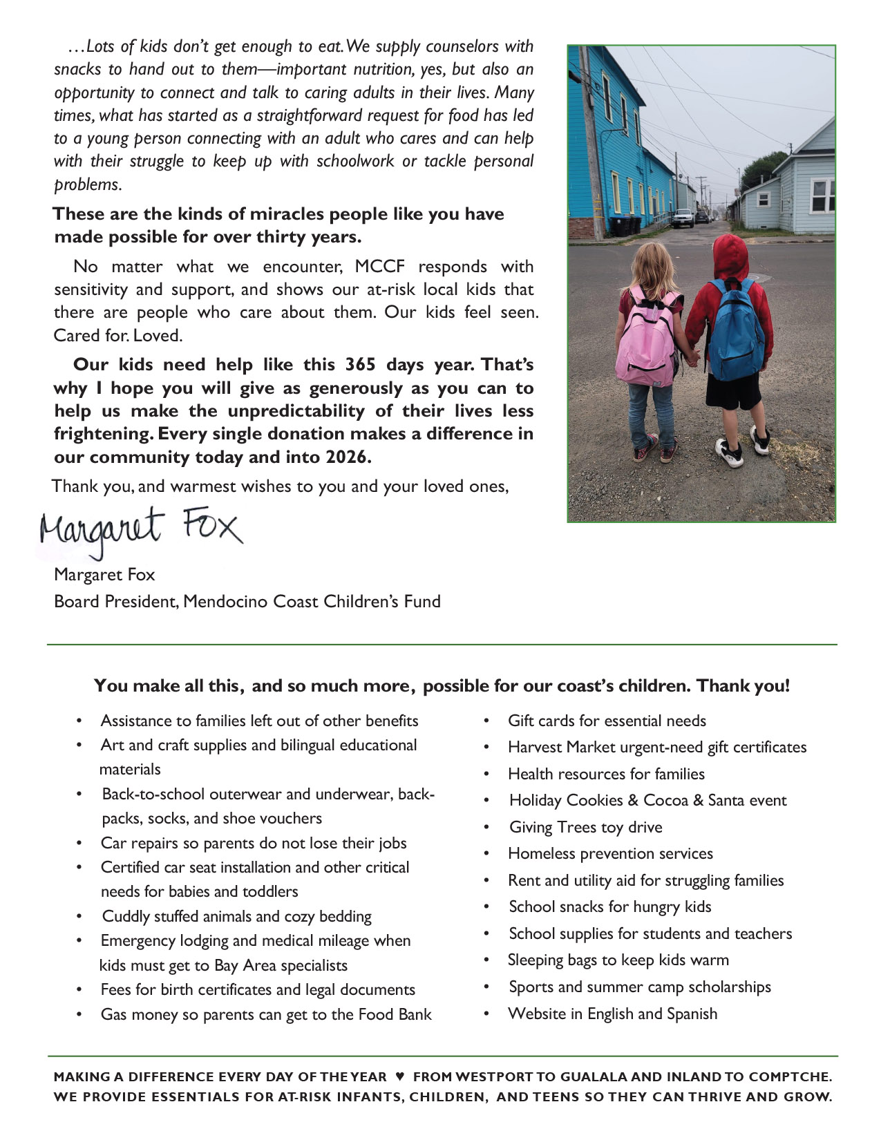 We’re here to help Mendocino coast kids get access to the resources they need to thrive. Click these links for either an English or Spanish version of the MCCF Community Resource List for quick access to locations and phone numbers of crucial services.