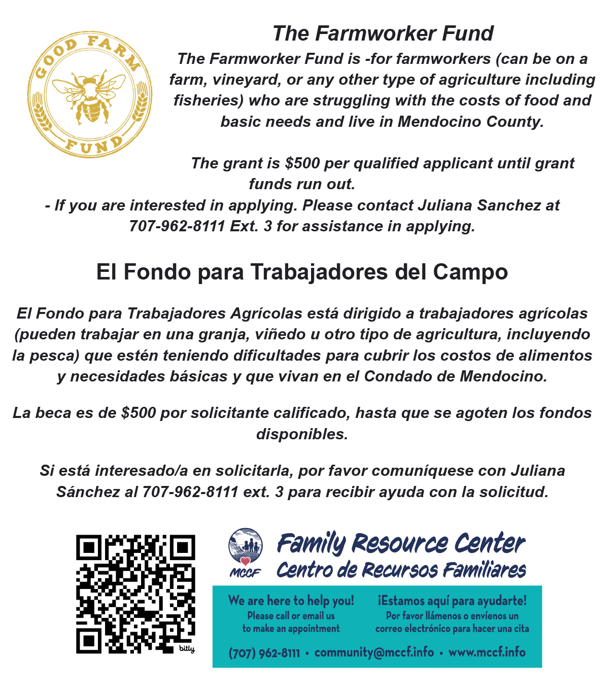 We’re here to help Mendocino coast kids get access to the resources they need to thrive. Click these links for either an English or Spanish version of the MCCF Community Resource List for quick access to locations and phone numbers of crucial services.